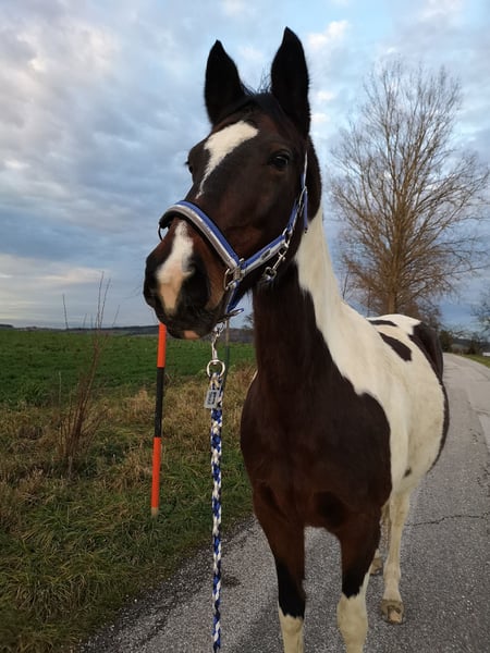 Für meine 20 jährige Warmblut-Pony-Mix Stute suche ich eine zuverlässige Reitbeteiligung. Sie ist 152 cm groß, eine hübsche Schecke und sehr brav im Umgang. Mit ihr ist vieles möglich: von Bodenarbeit bis hin zu gemütlichen Ausritten. Sie wird freizeitmäßig geritten, sowohl englisch als auch western (derzeit habe ich nur einen Westernsattel und ein Pad für das Reiten ohne Sattel). Wir stehen in einem kleinen Stall in Krexham (4624 Pennewang) mit einem Reitplatz und einem schönen Ausreitgelände. Gesucht wird ein richtiger Pferdemensch, der bei jedem Wetter gern im Stall ist und nicht nur an schönen, warmen Tagen. Du solltest Erfahrung und Freude am Umgang mit Pferden haben, Zuverlässig und Verantwortungsbewusst sein. Wichtig wäre auch, dass du über 18 Jahre alt und mobil bist, da der Stall mit Öffis nicht erreichbar ist. Ich verlange 100€ für 3mal pro Woche (2 Wochentage und 1 Tag am Wochenende). An den Wochenenden müssen wir die Boxen selbst misten. Wenn du Lust auf eine liebe, unkomplizierte Stute hast und du dir eine langfristige Reitbeteiligung vorstellen kannst, dann freue ich mich über deine Nachricht.