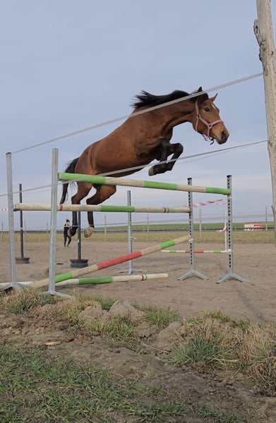KINLEY, born in 2022, a beautiful mare suitable for sport. Height: 16.1 hh Breed: Greater Poland Horse (Konie Wielkopolski) Sired by Magnum vd Bisschop × Korwetta 100% healthy – complete set of X-ray images from August 2025 available for review. Easy to handle, eager to work, energetic. Very dynamic and strong in jumping. Precise and attentive. Excellent technique. Preliminarily trained for riding work. More information: +48 518626267 (WhatsApp)
