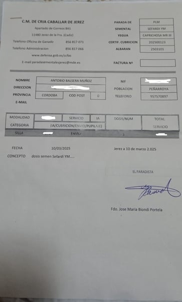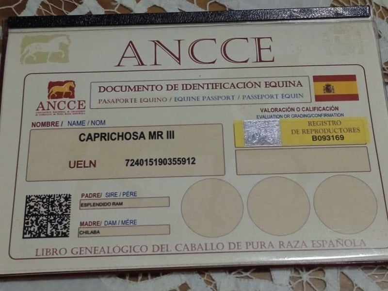 In Zusammenarbeit mit unserem spanischen Partner bieten wir die sechsjährige, kastanienbraune PRE-Stute Caprichosa MR III (ohne Altersangabe im November) zum Verkauf an. Sie zeichnet sich durch exzellenten Gebäude und hervorragende Bewegungen aus, hat ein Stockmaß von 166 cm und ist in allen drei Grundgangarten – Schritt, Trab und Galopp – ausgebildet. Die Stute ist derzeit im zehnten Monat tragend von einem 174 cm großen, kastanienbraunen Hengst aus Jerez de la Frontera (Cádiz). Sie hat bereits zwei ausgezeichnete kastanienbraune Fohlen zur Welt gebracht. Ihre Abstammung basiert auf hoch bewerteten Pferden und Stuten, darunter der Elitehengst Educado X. Caprichosa MR III ist ein sehr sanftes Pferd und für jeden Reiter geeignet.