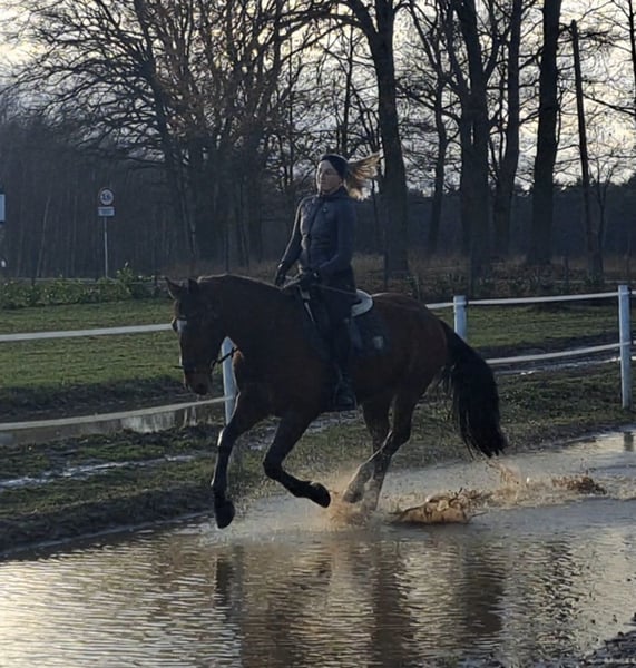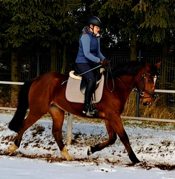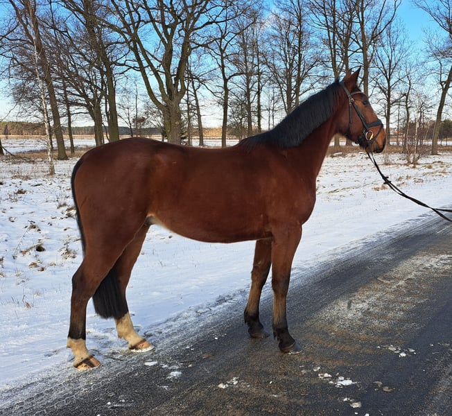 ISANDER – SW Crossbred Gelding with Excellent Character For sale is a lovely 4-year-old gelding, standing at 1.60 meters with good conformation. He is well-trained in all three basic gaits. He is confident cross-country and jumps small obstacles. He has a strong walk and an uphill canter. He is gentle and friendly in handling and very uncomplicated. Perfect for advanced recreational riding, including dressage and jumping. He is healthy, dewormed, and herd-friendly. Transport can be arranged. Videos available via WhatsApp. Location: Lusatia near Görlitz