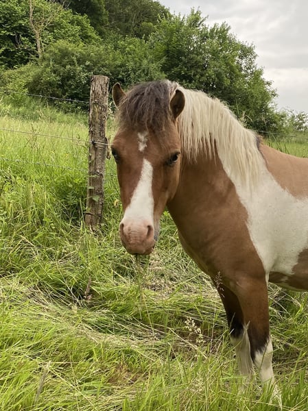 7 jähriger Pony Hengst in Sonderlackierung sucht ein neues 5* Zuhause 05/2018 geboren Mutter Shetland Pony, Vater Welsh Pony Sozial, verspielt & brav im Umgang. Kennt Straßenverkehr, Hufschmied und ältere Kinder. Geht am liebsten ins Gelände, sowohl als Handpferd als auch geritten. Er mag Bodenarbeit & würde sicherlich ein gutes Fahrpony werden. Rehe- und Ekzemfrei, läuft barhuf top. Wichtig ist mir für das neue Zuhause: Ponygesellschaft Offenstall bzw. täglicher Auslauf in der Herde Eine erwachsene Bezugsperson Regelmäßige Beschäftigung Kein reines Kinderpony! Es handelt sich um einen jungen Hengst, der selbstverständlich noch weitere Ausbildung benötigt, deshalb nur an erfahrene Menschen. Weiteres gerne auf Anfrage.