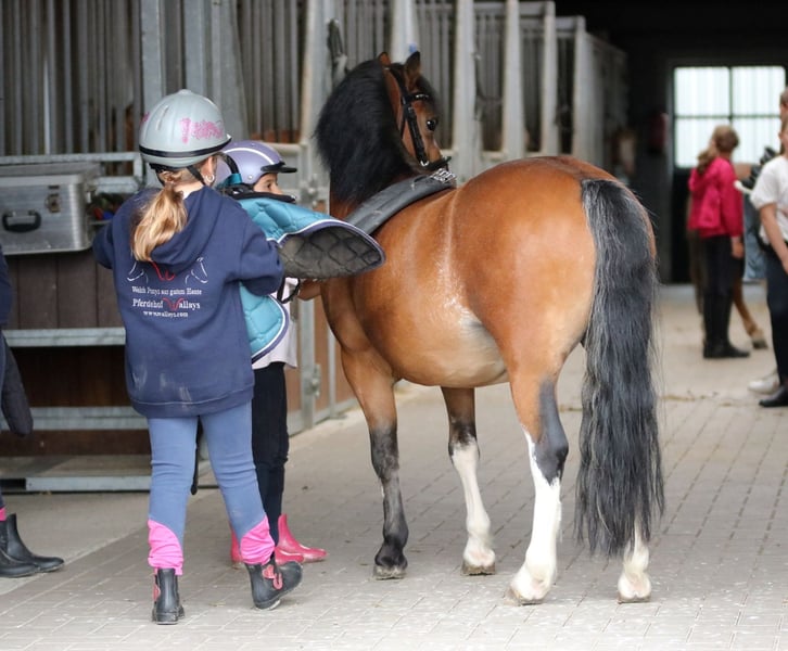 **Sales Advertisement: Charming Welsh-A Gelding for Sale!** We are looking for a loving new home for our beautiful Welsh-A gelding! Vaccinated, dewormed, regularly shod, and teeth floated by the veterinarian. This young gelding is ideal for leisure activities and is excellent for relaxed riding as well as various activities. He is well-mannered, friendly in handling, and has a great character. Child-friendly and open-minded, he can be handled/groomed/lunged/saddled by children. He is healthy, well-socialized, and has already gained initial experience with children and other animals. "Dickie," as he is affectionately called, is used to being handled by children from the age of 6. He loves lunging sessions with children from 5 years old, showing reliability and patience. He enjoys jumping in the woods or in the arena, demonstrating talent and maintaining overview. When riding in a group, he can be used as the first or last pony. Dickie is also familiar with pony games, has been ridden both with and without a saddle, and has participated in costume riding! If you are looking for a loyal companion for leisure and beautiful moments in nature, then "Dickie" is just right for you! For interest or further questions, please call. Videos are available and can be sent via WhatsApp.