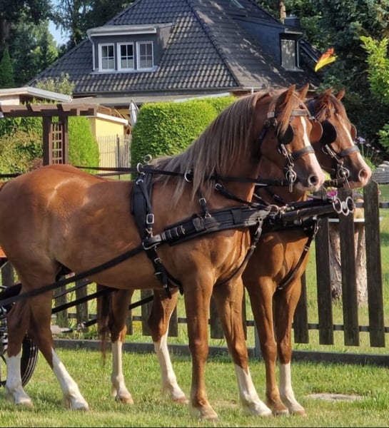 „Hallo, liebe Liebhaber von Welsh-Ponys! Ich biete ein ganz besonderes Welsh-Pony zum Verkauf an. Es ist ein Wallach mit einem Stockmaß von etwa 1,38 bis 1,39 Metern und stammt aus einer hervorragenden Linie. Der Pony ist sowohl ein- als auch zweispännig fahrsicher und zeigt im Verkehr keinerlei Scheu. Er wurde zwar gelegentlich geritten, jedoch nicht vollständig ausgebildet, da ich vor allem Kutsche gefahren bin. Er ist sehr gelassen und wurde auch von Kindern geführt. Zusätzlich biete ich gegen Aufpreis ein hochwertiges einspänniges Geschirr der Marke Kieffer sowie eine besondere Pferdekutsche an, die sowohl ein- als auch zweispännig gefahren werden kann. Diese Kutsche und das Geschirr sind von deutscher Herstellung und von höchster Qualität. Bei Interesse sende ich gerne Fotos und Videos über WhatsApp zu. Ich hoffe sehr, dass er ein liebevolles Zuhause findet, da ich ihn aus gesundheitlichen Gründen abgeben muss.“