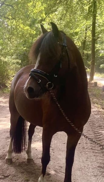 Ben jij opzoek naar een jong talent en een maatje voor het leven? Onze prachtige 4 jarige Welsh B merrie staat klaar om samen met jou nieuwe avonturen te gaan beleven! Dankzij haar werkwillige karakter en haar fijne ruime bewegingen is ze zeer geschikt voor de sport. Ze beweegt lichtvoetig en laat zien dat ze klaar is om verder opgeleid te gaan worden. Momenteel proberen we haar wekelijks te rijden, na de vakantie (nadat ze weken heeft stilgestaan) is het nog steeds opstappen en wegrijden! Geschikt voor een ruiter of amazone die op zoek is naar een jonge pony om samen te kunnen uitgroeien tot een fantastische sport- of recreatiepony. Interesse? Neem gerust contact op voor meer informatie of om kennis te maken met deze prachtige merrie.