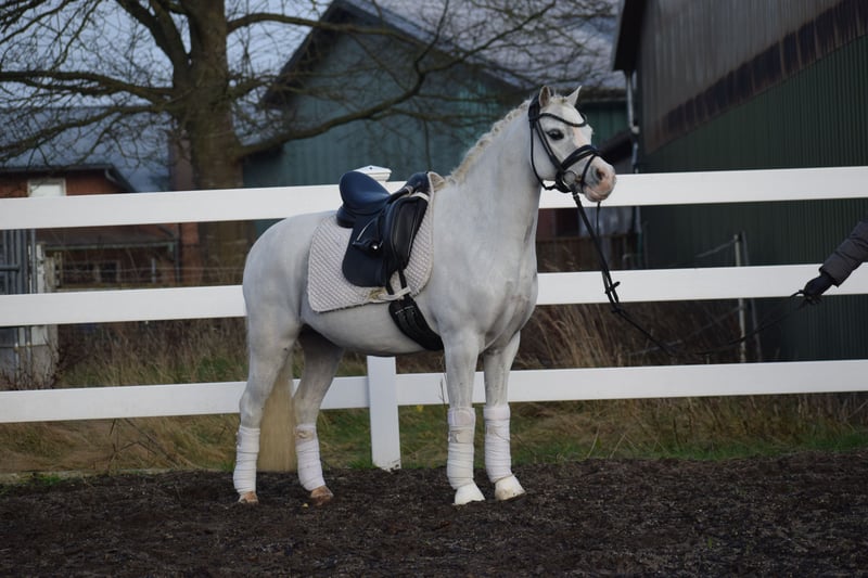 WUNDERSCHÖNER & BEWEGUNGSSRARKER SCHLEIFENSAMMLER & ALLESKÖNNER FÜR DIE KLEINEN - TURNIERE - DRESSUR - SPRINGEN - GELÄNDE - WASSER - AUSRITTE - DIESES PONY EBNET EINEM ALLE WEGE - Kinder, Junioren, Anfänger geeignet! Zum Verkauf steht in Vertretung des Besitzers, dieser beeindruckend schöne, 128 cm große, 9-jährige, hollandische Welsh Schimmel Wallach von WESLA REYSOR x FRONBACH HELLO CAMPERS. Mit "LORDI" ist der Niedlichkeitsfaktor total erreicht, an seiner Box kommt keiner Vorbeo ohne den kleinen "LORDI" anzuhimmeln. Er nutzt das Charmant aus und lässt sich genüßlich mit Streicheleinheiten jederzeit gerne Verwöhnen. "LORDI" wurde bereits mehrfach von Kindern erfolgreich im Turniersport, sowohl in der Dressur , als auch im Springen vorgestellt. Er ist Parcoursicher, kennt bunte Sprunge und auch unterbauten und zieht immer mittig auf den Sprung zu. Ein stehenbleiben oder Umlenken kennt "LORDI" nicht, er zieht voller Motivation über den Sprung uns vermittelt dadurch absolute Sicherheit. In der Dressur ist er auf sicherem A Niveau ausgebildet und lässt sich vorbildlich reiten. Er läuft sicher und leicht in Anlehnung auch ganz ohne Hilfszügel. Bodenarbeit ist "LORDI" ebenfalls bekannt und er ist ein souveräner Partner in jeder Lebenslage. "LORDI" ist immer fröhlich wenn man sich mit Ihm beschäftigt und für jeden Spaß zu haben, ob Kostümwettbewerb, oder mit Fingermalfarbe bemalt zu werden, er genießt alles und freut sich über jede Abwechslung, er ist daher ideal für Kinder. Ein umfangreicher guter röntgologischer und klinischer Tüv liegen vor und seiner Zukunft als Sport- und Famielenpartner steht nichts im Wege. "LORDI" lässt gewiss alle herzen höher schlagen und bereichert jede Familie.