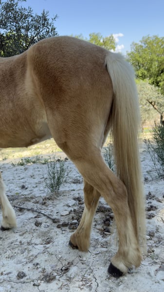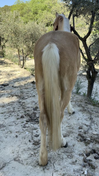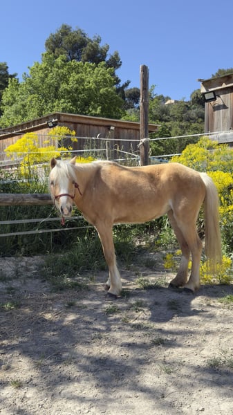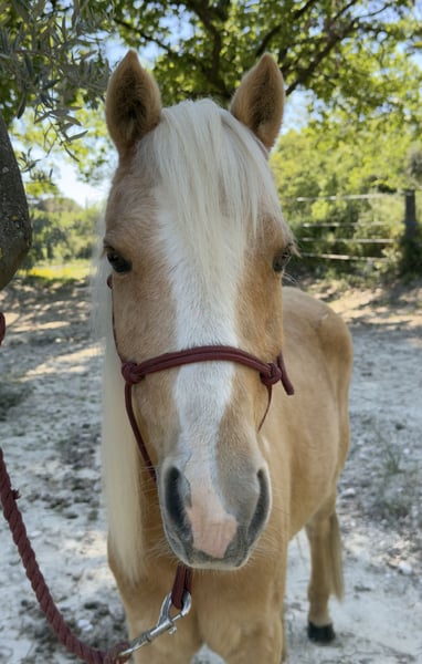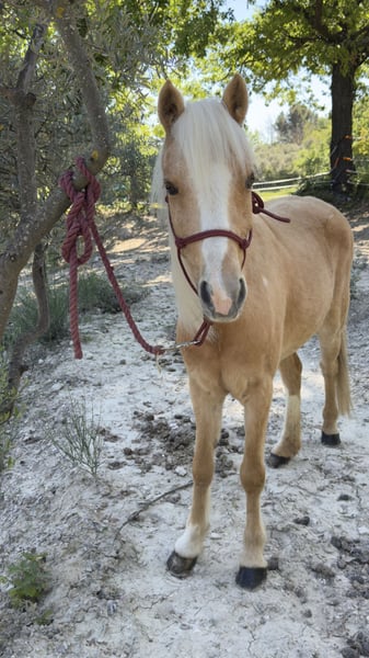 Feeling est une jolie jument palomino de 11 ans, plein papier Welsh Cob, avec un modèle fin et harmonieux. De petite taille (entre 1m25 et 1m27), elle est parfaitement adaptée pour un enfant ou un petit gabarit, tout en gardant une vraie présence. C’est une jument polyvalente, dressée aussi bien en carrière qu’en extérieur. Elle part en balade sans difficulté, participe à des cours enfants jusqu’au galop 2, et montre une belle énergie sous la selle. Elle peut être vive et “gaze” par moments, ce qui en fait une ponette intéressante, mais elle demande un cavalier respectueux, avec une main légère. Elle n’est clairement pas une ponette de club classique : elle a besoin de créer une vraie relation avec sa cavalière ou son cavalier. Une fois ce lien installé, elle devient une partenaire attachante et volontaire et travailleuse. Feeling adore le travail en éthologie, domaine dans lequel elle s’exprime très bien. Elle aime comprendre, interagir, et évoluer dans une relation basée sur la confiance. C’est vraiment une jument qui fonctionne à l’affect et au feeling (elle porte bien son nom), donc il faut prendre le temps de la connaître pour qu’elle s’épanouisse, son atout principal c’est qu’elle sera très proche de chacun des membre de la famille et connaîtra chacun d’entre vous sur le bout des doigts ! Elle a déjà sauté, sans être spécialisée dans la discipline par manque de travail, mais elle sait faire. Elle n’a jamais été sortie en concours, ce qui laisse encore beaucoup de possibilités pour quelqu’un qui voudrait construire quelque chose avec elle. Côté soins, Feeling est saine et suivie. Elle n’est pas sujette aux coliques, n’a jamais eu de problème de pieds. Une petite tâche à l’œil est surveillée chaque année, sans évolution, depuis les soins reçus, et la tache est partie. Elle accepte la douche, même si cela peut demander un petit rappel. À noter qu’elle n’aime pas les piqûres. C’est également une excellente mère, douce et attentive, qui a déjà donné un poulain de robe crème/palomino. Elle prend même soin des autres poulains, ce qui témoigne de son tempérament particulièrement bienveillant et doux. Feeling a été débourrée tardivement, vers ses 7 ans, afin de respecter pleinement sa croissance. Elle est arrivée aux écuries du Pey Blanc d’Aix en Provence à 1 an et demi, et est née à l’élevage de l’Arche en Sarthe, avec un historique clair et sérieux. Elle est proposée entre 3000€ et 4500€ selon les conditions, possibilité de la prendre pleine par exemple. Possibilité d’échange contre une ponette avec papiers minimum OC. Vente encadrée par les écuries (statut éleveur), paiement par virement ou chèque avec la possibilité de payer une partie en espèces. Feeling, c’est pas juste une jument “clé en main”, c’est une vraie rencontre. Une jument avec du cœur, du caractère et un potentiel pour quelqu’un prêt à s’investir avec elle !
