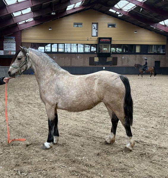 Four-year-old pregnant Welsh C mare. Height approximately 1.30 m, pregnant for mid-May 2026 by a black Welsh C stallion, also available with us. Gentle, well-behaved mare with a friendly temperament, healthy and without any flaws.