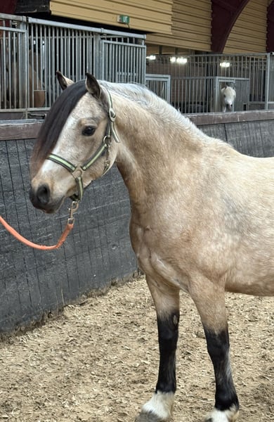 4 jarige drachtige Welsh C merrie. Stokmaat +- 1.30m, drachtig voor midden mei 2026 van een zwarte C hengst, ook bij ons aanwezig. Lieve brave merrie in de omgang, gezond zonder gebreken