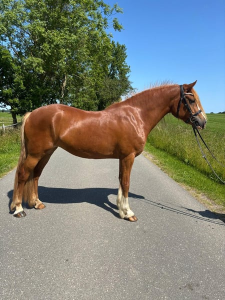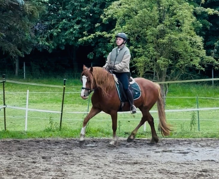 Welsh Cob Mare A dream pony, future youth/children's pony for sale! Smilla is 3 years old, currently stands at 148 cm, and is absolutely stunning. Anyone who passes by stops to admire her presence. With her very sweet and calm character, she would make an excellent youth and children's pony, or an ideal mother/child pony. She is sporty, enjoys working, but remains calm and collected. She has just been gently started under saddle, and it's a real pleasure to work with her willing nature. In the field, she has been led so far, carefully observing everything around her, staying close to her handler, and never pulling on the lead. She also performs well over jumps. Smilla loves variety and takes great joy in new experiences. We are looking for a wonderful new home for her where she can be nurtured and receive plenty of cuddles! She is well-behaved for the farrier, is familiar with trailer loading, and is regularly vaccinated and dewormed. Very social in the herd, she is accustomed to both box and paddock living. With her excellent pedigree, she would also be a gem for breeding.