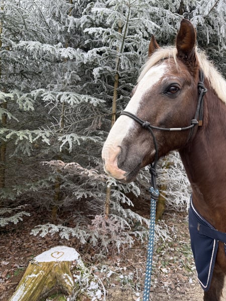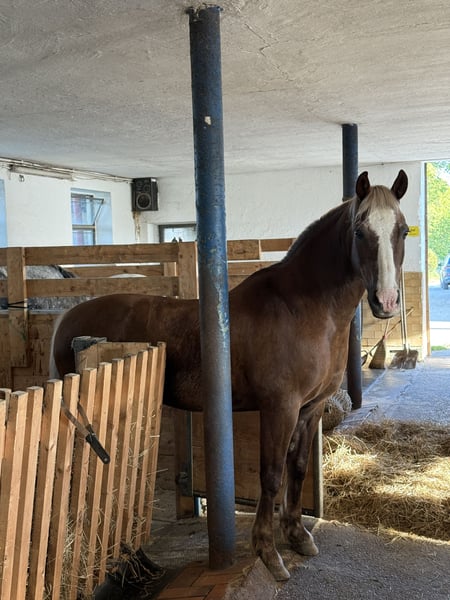 Magic ist ein 18 jähriger, 153 cm großer, sensibler Welsh Partbred Wallach, der einen einfühlsamen und konsequenten Menschen an seiner Seite braucht. Er ist sehr sensibel und verlässt sich gerne auf seinen Reiter-Partner, macht aber dann auch alles für ihn. Mit klaren Strukturen, festen Routinen und Vertrauen kommt er sehr gut zurecht und zeigt wie lernwillig und aufmerksam er sein kann. Wenn man Magic auf der Koppel ruft, kommt er. Ausbildungsstand: - Schritt und Trab, Travers und Renvers auf gerader und gebogener Linie - Schritttraversalen (Trabtraversalen wenn man es sicher reiten kann) - A-Dressur fertig ausgebildet - E-Springen sicher, Potential zu mehr - Gelände, er mag keine Kühe und man muss ihm Sicherheit geben, dann kann man mit ihm alleine raus gehen, zu zweit oder in der Gruppe ist es gar kein Problem Er arbeitet auch sehr gerne am Boden und möchte überall gefallen und es einem Recht machen, oft sogar übereifrig. Kinder mag er auch sehr gerne. Altersentsprechend ist er top fit. Er läuft Barhuf und im Gelände mit Hufschuhen. Er ist jetzt 10-12 Stunden auf dem Paddock und im Sommer auf der Wiese. Offenstall war er auch schon, mag aber gerne am Abend seine Ruhe in der Box. Ich muss ihn leider aus persönlichen Gründen abgeben und ich würde mir wünschen, dass er seine neue Familie findet, wo er bleiben kann. Bei Interesse kann gerne sein Sattel und Zaumzeug usw. mit abgegeben werden.