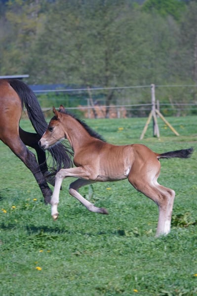 In exzellentem, typischen Erscheinungsbild des Ehrengold MJ ist dieser Hengstanwärter aufgemacht. In natürlicher Aufrichtung trabt ERIK bei guter Selbsthaltung und harmonischer Mechanik in Hinter- und Vorhand. Der bergauf konstruierte Körper rundet das Gesamtbild positiv ab. Ein harmonisches Verhältnis von Beinlänge und Oberkörper und klare Reitpferdepoints zeichnen ihn aus. Die Liste der hocherfolgreichen Sportpferde aus aller engster Familie ist qualitativ und quantitativ erfreulich. Wffs, PSSM 1 und CA frei getestet. ERIK (geboren Mai 2025) kann jederzeit in sein neues Zuhause ziehen!
