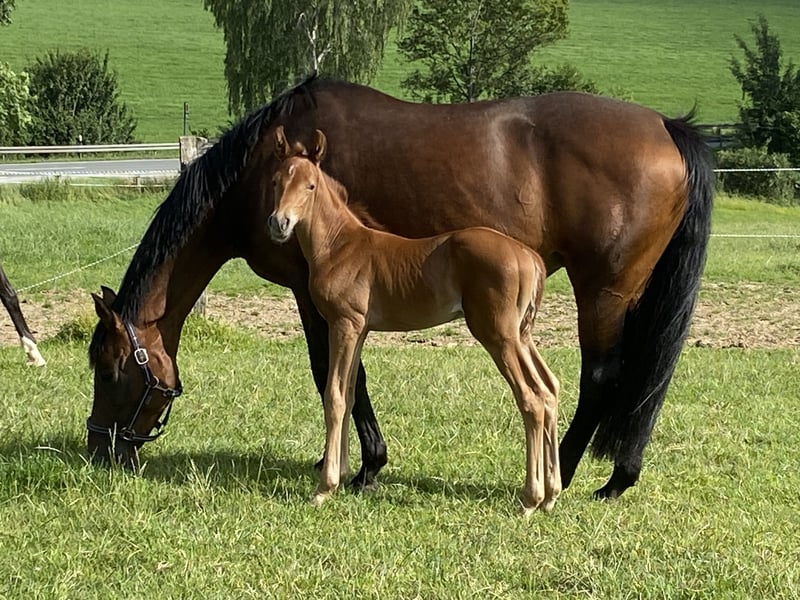 **Verkaufsanzeige: Wunderschöner Westfalen Hengst zu verkaufen!** Wir bieten einen vielversprechenden Westfalen Hengst zum Verkauf an. Dieses Wochenende für 10.500€ **Details:** - **Rasse:** Westfale - **Geschlecht:** Hengst - **Geburtsjahr:** 2023 - **Farbe:** Fuchs - **Stockmaß:** - **Eignung:** Dressur Dieser charmante Hengst überzeugt nicht nur durch seine auffällige Farbe, sondern auch durch sein freundliches Wesen und seine hohe Lernbereitschaft. Er hat das Potenzial, sich in der Dressur hervorragend zu entwickeln und wird sicherlich viel Freude bereiten. Er ist gut sozialisiert und zeigt bereits jetzt ein vielversprechendes Talent. Ideal für ambitionierte Reiter, die einen zuverlässigen Partner für die Zukunft suchen. Bei Interesse oder weiteren Fragen freuen wir uns auf Ihre Nachricht!