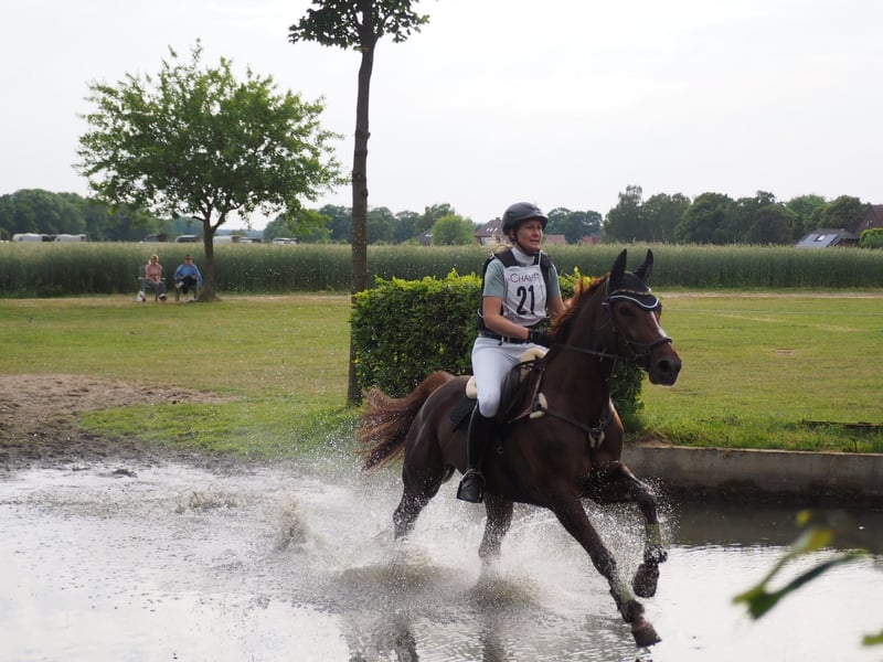 Elegant Westphalian mare, born in 2016, seeking a new owner This beautiful dark chestnut mare, which we have bred ourselves, impresses with her striking appearance and versatile jumping talent. She demonstrates a good jumping technique. I have personally trained her and competed up to Medium (1.20 m). We have been successful and placed well in show jumping classes A and L (up to 1.15 m). Additionally, we have participated in team competitions at local tournaments, including cross-country phases. Florentina is an ideal partner for the ambitious leisure rider or the young rider looking for a show jumping horse to start in the A and L classes. If you are interested, I look forward to hearing from you to discuss further details and to give you a personal impression.