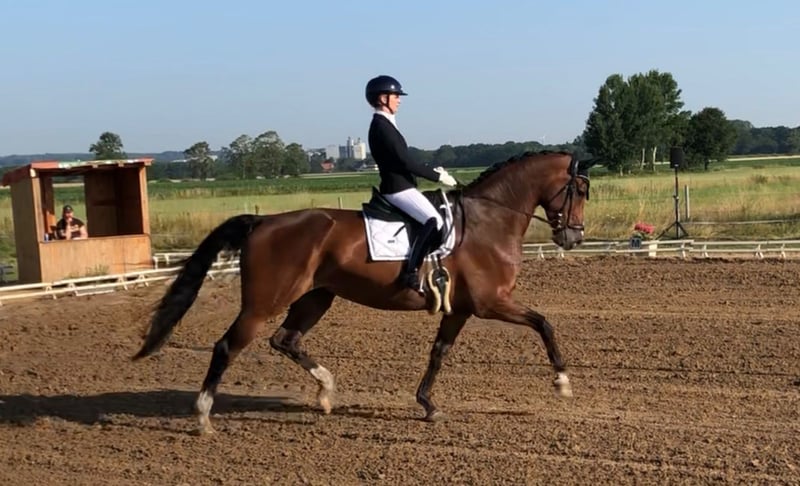 Na sprzedaż wystawiona jest 11-letnia klacz Westfalska (173 cm wzrostu), wyróżniająca się wyjątkowo przyjaznym, zrównoważonym i niezawodnym charakterem. Jej jeździłem od czasu, gdy miała 4 lata, i już wtedy ukończyłem z nią mój odznakę jeździecką. Od 4 lat jest w naszym posiadaniu, podczas których była systematycznie rozwijana, a także odnosiliśmy sukcesy na treningach i zawodach. Osiągnięcia: - Miejsce w konkursach do klasy L w ujeżdżeniu - Wielokrotna zwyciężczyni konkursów klasy A i A** w ujeżdżeniu, z ocenami sięgającymi nawet 8 - Miejsca w konkursach skoków na poziomie A** W tym roku została już zaprezentowana przez dziecko w konkursach dla początkujących jeźdźców (2. miejsce) i zawsze wykazywała się spokojem, opanowaniem oraz pełną niezawodnością. Dzięki swojej rittigkeit i uczciwemu charakterowi doskonale sprawdza się jako koń szkoleniowy dla jeźdźców pragnących się rozwijać. Zapewnia bardzo pewne odczucia podczas jazdy i wybacza błędy jeźdźca, co czyni ją odpowiednią również dla niepewnych lub mniej doświadczonych jeźdźców. Jednocześnie posiada wystarczającą jakość i doświadczenie, by cieszyć się nią także ambitni jeźdźcy w dyscyplinach ujeżdżenia i skoków. Jest bardzo przywiązana do ludzi, lubi dzieci, jest przytulna i w codziennym kontakcie zawsze grzeczna i spokojna. Dodatkowo jest absolutnie odważna i zna codzienne życie na gospodarstwie – traktory, psy, koty oraz rutynowe prace nie stanowią dla niej problemu. Podczas codziennego kontaktu i pod jeźdźcem jest szczerym i wiernym partnerem. Sprzedaż odbywa się wyłącznie z powodu zmiany kierunku sportowego oraz braku czasu z powodu kolejnego konia. Nie jest to sprzedaż w nagłym pośpiechu. To idealny koń dla wszystkich, którzy szukają pewnego, uczącego i jednocześnie wszechstronnego partnera na czas wolny i zawody. Życzymy jej kochającego domu, w którym jej wyjątkowy charakter będzie doceniany. W razie pytań chętnie służymy dodatkowymi informacjami.