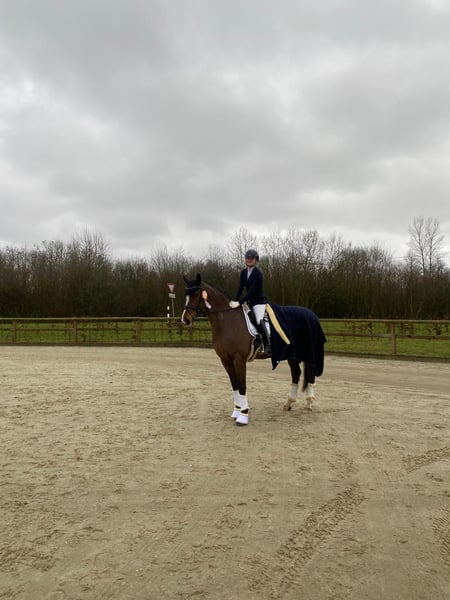 We are offering our 11-year-old mare Neklada for sale. She stands approximately 1.73 meters (16.1 hh) and is a very lovable and straightforward mare with a wonderful character. She is always friendly towards people, motivated in work, and impresses with her reliable nature. In dressage, she is a consistent winner in classes A* and A**, and has placed multiple times in L. She is pleasant to ride and provides her rider with a confident, secure feeling. In show jumping, she has also been placed several times up to A** and consistently demonstrates honesty, attentiveness, and a strong desire to perform well. A particularly noteworthy aspect is that Neklada has already been successfully competed with a child at shows, proving to be consistently reliable and resilient under pressure. Thanks to her dual aptitude, she is a versatile partner and especially suitable for ambitious beginners in competition or riders who wish to develop their skills in both dressage and jumping. She is also an excellent team horse. We are looking for a loving and fitting home where her character and work ethic will be appreciated. For serious inquiries, we are happy to answer any questions at any time.
