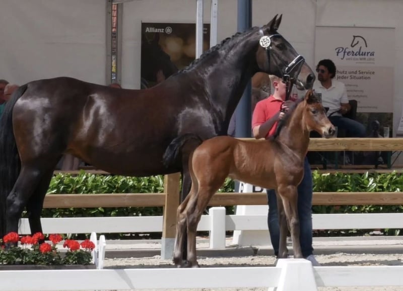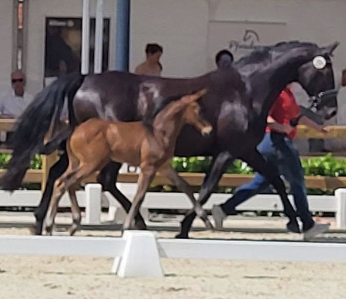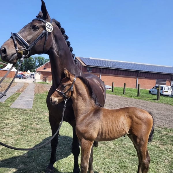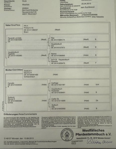 Zum Verkauf steht meine fast 13-jährige (25. April 2013 geboren) Verbandsprämienstute. Pippa 26 Würde sie auch ggf. Bei einem passenden Angebot gegen einen Wallach oder Stute tauschen ( auch roh ab Jährlingsalter ). Ich wollte Pippa für mich als Freizeitpferd wieder fertig machen, jedoch ist hierbei aufgefallen das sich dies als sehr schwierig gestaltet. Genaueres gerne am Telefon. KEIN Befund! Sie war die letzten 6 Jahre als Zuchtstute im Einsatz (jetzt ein Jahr ohne Fohlen). Das letzte Fohlen von 2025 goldprämiert. Fohlen siehe Fotos. Davor war Sie im Sport unterwegs L-Springen, A-Dressur und A-Gelände. Sehr gute Grundgangarten. Sie wird als reine Zuchtstute verkauft! Von meiner Seite aus als nicht reitbar zum Verkauf angeboten! Rasse Westfale Größe 170 cm Abstammung siehe Foto Mir fällt es echt schwer Pippa wieder abgeben zu müssen jedoch habe ich ein Pferd zum Reiten gesucht. Pippa ist ein ehrliches und herzensgutes Pferd, was immer händelbar und kopfklar ist vom Boden aus. Vom Boden aus haben wir uns die letzten 6 Monate sehr viel erarbeitet. Selbst von Kindern (12 Jahre alt) kann sie geführt werden. Spaziergänge alleine im Gelände sind kein Problem. Sie hat einen ganz tollen Charakter und versteht sich mit jedem Pferd, egal ob Stute oder Wallach. Sie steht in einer gemischten Herde von Shetty bis Großpferd. Sie ist den ganzen Tag über draußen und nachts in der Box. Ich wünsche mir für Pippa ein zu Hause für immer. Kein Notverkauf !!! Bei Interesse gerne anrufen oder eine Nachricht mit den Kontaktdaten schicken. Videos können gerne per Whats App geschickt werden (Longe, Reiten, Freilauf).