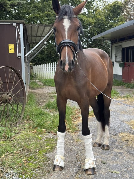 3-jährige Stute von Ellis x Londontime – Nachwuchshoffnung mit Perspektive Diese aus eigener Zucht stammende, auffällig aufgemachte 3-jährige Stute überzeugt mit drei überdurchschnittlichen, groß angelegten Grundgangarten und einer sehr guten Arbeitseinstellung. Elsa, mit einem aktuellen Stockmaß von 1,70 m, wurde schonend angeritten und zeigt sich unter dem Reiter stets motiviert, nervenstark und kopfklar. Sie begeistert mit einem raumgreifenden, taktsicheren Schritt, einem schwungvollen, aktiven Trab sowie einem bergauf gesprungenen, gut ausbalancierten Galopp. Besonders hervorzuheben ist ihre Leichttrittigkeit und feine Anlehnung – Elsa ist angenehm in der Hand und macht es dem Reiter leicht, sie korrekt zu fördern. Mit ihrer beeindruckenden Qualität und ihrem modernen Auftritt bringt sie alles mit, was es für eine erfolgreiche Karriere im Dressurviereck braucht. Elsa ist selbstverständlich regelmäßig dem Schmied vorgestellt, zahnärztlich kontrolliert und behandelt, sowie ordnungsgemäß entwurmt. Sie ist außerdem verladefromm und zeigt sich im täglichen Umgang sehr unkompliziert. Wer ein Nachwuchspferd mit Perspektive für den großen Sport sucht, wird hier fündig.