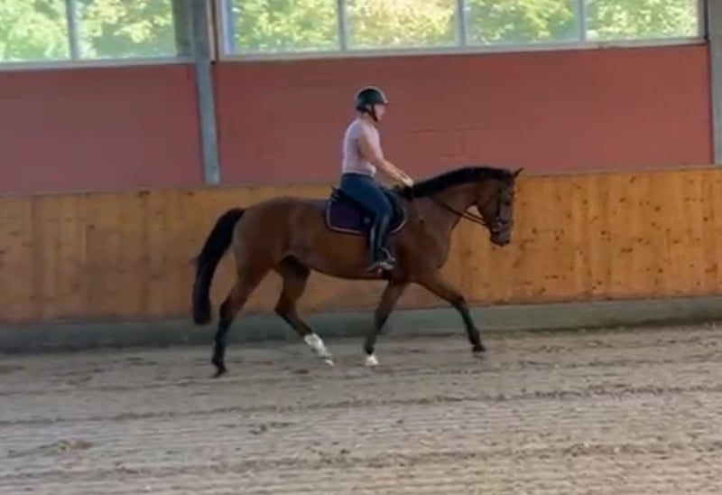 Holly ist ein Allrounder und ein verlässliches Nachwuchspferd. Im täglichen Umgang ist sie absolut brav, unkompliziert und menschenbezogen! Einsatzbereiche sowohl im Freizeit- als auch im Sportbereich. Sie wurde vor ca 8 Wochen schonend angeritten und zeigt sich dabei äußerst lernwillig, gelassen und rittig. Sie überzeugt durch ihren "klaren Kopf", ihr freundliches Wesen und ihre gute Arbeitseinstellung. Sie will immer alles richtig machen und macht jeden Tag Spaß! Mit drei taktreinen Grundgangarten bietet sie eine solide Basis für die weitere Ausbildung. Auch das Freispringen macht sie selbstverständlich und mit sicherem Ablauf. Durch ihr ausgeglichenes Temperament eignet sie sich ideal für Freizeitreiter, ambitionierte (Turnier-)Reiter und Wiedereinsteiger, die ein vielseitiges Pferd für die Zukunft suchen und sich ihr Pferd selbst ausbilden können/möchten. Verkauf nur in nachweislich gute und pferdegerechte Hände mit Reitern, die bereits Erfahrung mit der Ausbildung von jungen Pferden haben. Videos auf Anfrage.