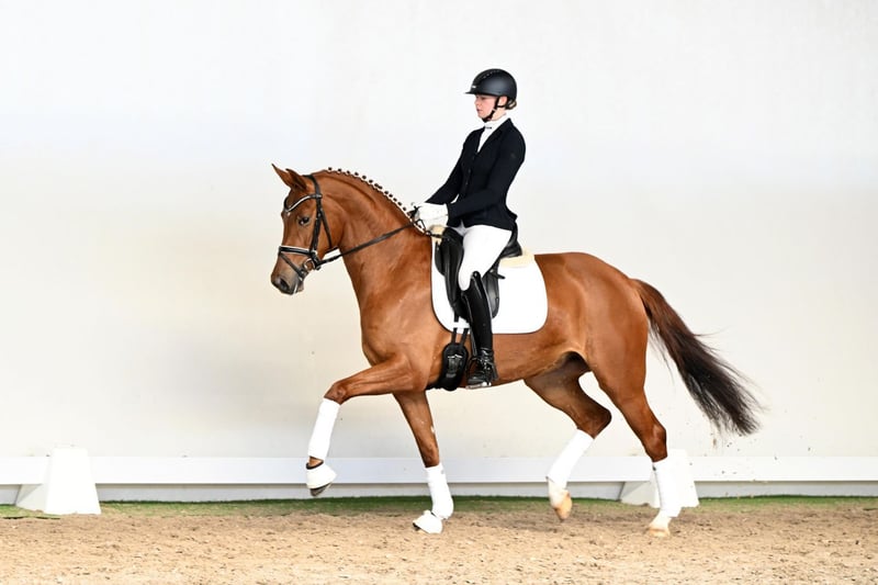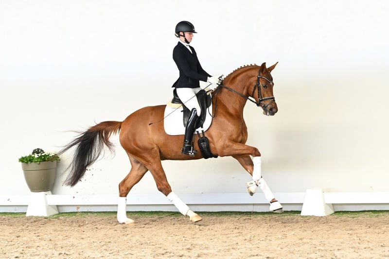What an entrance: the four-year-old mare La Luna captivates from the very first moment and effortlessly draws every onlooker under her spell. With natural ease, an uphill tendency throughout, and remarkable elasticity, she impresses in all three basic gaits with outstanding quality. Her movement is defined by an active, powerful hind leg—the engine exactly where it should be. From this, she develops natural self-carriage and a convincing uphill balance that perfectly reflects modern dressage horse breeding at its finest. Under saddle, La Luna leaves nothing to be desired: sensitive to the aids, soft in the contact, and always in front of the leg, she offers her rider an exceptionally harmonious and light ride. A horse that knows how to present her rider to best advantage, consistently shining through quality and presence. Her pedigree is equally compelling: her sire La Vie stands for willingness to perform, exceptional movement potential, and outstanding character. Under Therese Nilshagen, he has proven himself successfully on the international stage. On the dam’s side, through Sandro Classic—Federal Champion of 2004—her lineage traces back to the influential Sandro Hit, providing a genetic foundation synonymous with modern type, expression, and sporting potential. La Luna is a horse that excites through movement, presence, and rideability alike—a highly attractive prospect for anyone seeking a modern young horse with that special something. Born to inspire.