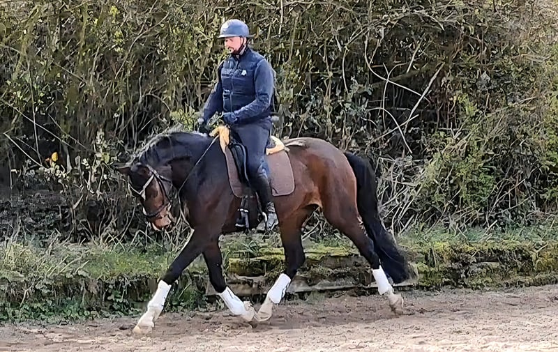 Eine junge Stute, wie man sie sich wünscht: klar im Kopf, mit bester Einstellung und bereits jetzt ein verlässlicher Partner. Diese vierjährige Tochter des Diamond First überzeugt nicht nur durch ihre Qualität, sondern vor allem durch ihr außergewöhnliches Interieur. Sie ist sehr menschenbezogen, absolut vertrauensvoll und bringt eine hervorragende Arbeitseinstellung mit. Aktuell ca. 1,69 m groß (Endmaß ca. 1,72–1,73 m) und seit etwa sechs Wochen schonend unter dem Sattel. Dabei zeigt sie sich sehr rittig, lernwillig und unkompliziert im täglichen Umgang. Ihre sehr guten Grundgangarten – insbesondere ein taktsicherer, großzügiger Schritt – sowie ihr zusätzlich erkennbares Talent beim Freispringen machen sie zu einem vielseitig veranlagten Nachwuchspferd mit Perspektive. Die Ausbildung erfolgt bewusst mit Ruhe und System nach klassischen Grundsätzen, ergänzt durch abwechslungsreiche Arbeit im Gelände und mit Stangen, um eine gesunde und nachhaltige Entwicklung zu fördern. Eine Stute für Reiter, die Wert auf Qualität, Charakter und eine ehrliche Ausbildung legen – und die nicht nur ein Sportpferd, sondern einen echten Partner fürs Leben suchen. Nur in ausgewählte, fördernde Hände abzugeben. Ernstgemeinte Anfragen werden bevorzugt.
