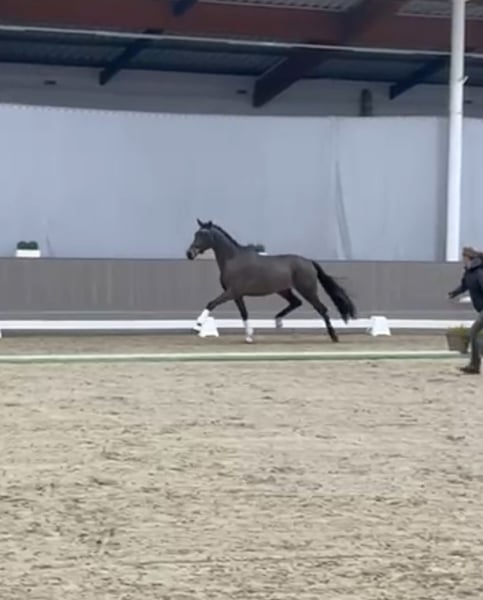 For sale: the promising mare Rock my Heart, aged 4 and standing 17.2 hh. Offered at a favorable price due to a dermatitis issue. With her distinguished pedigree, she combines two proven lines of modern dressage horse breeding: Her sire, Rock Forever NRW, was himself a Bundeschampion, multiple medalist at the World Championships for young dressage horses, and successful up to Grand Prix level. He is considered one of the most rideable and consistent sons of Rockwell, and his offspring are known for their performance in both sport and breeding. His progeny are characterized by high movement quality, strong character, and athleticism — qualities that Rock my Heart already demonstrates impressively. On the dam’s side, she descends from the well-established Rotspon, a son of Rubinstein I, who has long been regarded as a stallion of stamp quality for rideability and reliable inheritance. Rotspon is renowned for producing offspring with excellent riding qualities, an outstanding walk, and natural self-carriage. He has sired numerous successful dressage horses competing at national and international levels. With this lineage, Rock my Heart offers a combination of dynamism, movement strength, and rideability — an ideal foundation for a career in dressage. Her potential was recognized early on: she was awarded as a champion foal. Under saddle, she now confirms these high expectations. Since June 2025, she has been in professional training, showing herself to be easy to ride, eager to learn, and steady-minded. She already impressed in her first young horse class. Rock my Heart impresses not only with an excellent pedigree and quality but also with a friendly, cooperative character. She is an ideal partner for ambitious riders seeking a young horse with prospects for high-level sport. Rocky is already familiar with trail riding, training away from home, etc., and is always reliable and well-behaved, everywhere and at any time. *A fee of 45.00 EUR will be charged for a trial ride.* *The price will increase with further training.*