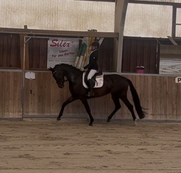Im Auftrag Zu Verkauf steht die vielversprechende Stute Rock my Heart, 4 Jahre alt und 1,72 m groß.Unter Wert zu verkaufen wegen Ekzem. Mit ihrer bedeutenden Abstammung vereint sie zwei bewährte Linien des modernen Dressurpferdesports: Ihr Vater Rock Forever NRW war selbst Bundeschampion, mehrfacher Medaillengewinner bei den Weltmeisterschaften der jungen Dressurpferde und bis Grand Prix erfolgreich. Er gilt als einer der rittigsten und beständigsten Söhne des Rockwell und überzeugt in der Zucht mit leistungsstarken Nachkommen, die sich sowohl im Sport als auch in der Zucht durchsetzen konnten. Seine Nachkommen zeichnen sich durch hohe Bewegungsqualität, Charakterstärke und Sportlichkeit aus – Eigenschaften, die Rock my Heart bereits eindrucksvoll zeigt. Auf der Mutterseite findet sich der bewährte Rotspon, ein Sohn des Rubinstein I, der seit Jahren als Stempelhengst für Rittigkeit und Vererbungssicherheit gilt. Rotspon ist bekannt für seine Nachkommen mit besonders guter Reitqualität, einem hervorragenden Schritt und einer natürlichen Versammlungsbereitschaft. Er hat zahlreiche erfolgreiche Dressurpferde hervorgebracht, die auf nationalem wie internationalem Niveau überzeugen. Mit dieser Abstammung bringt Rock my Heart also eine Kombination aus Dynamik, Bewegungsstärke und Rittigkeit mit – eine ideale Basis für eine Karriere im Dressursport. Schon als Fohlen wurde ihr Potenzial erkannt: Sie wurde als Championatsfohlen ausgezeichnet. Unter dem Sattel bestätigt sie nun diese hohe Erwartung. Seit 06/2025 in professioneller Ausbildung, zeigt sie sich leichtrittig, lernbereit und nervenstark. In ihrer ersten Jungpferdeprüfung konnte sie bereits glänzen. Rock my Heart besticht nicht nur mit exzellenter Abstammung und Qualität, sondern auch mit einem freundlichen, kooperativen Charakter. Damit ist sie eine ideale Partnerin für ambitionierte Reiter, die ein Nachwuchspferd mit Perspektive für den gehobenen Sport suchen. Rocky kennt bereits das Gelände, Auswärtstraining etc. und ist immer und überall jederzeit zuverlässig und brav *Für ein Probereiten wird eine Gebühr von 45.00 EUR berechnet* *Der Preis steigt bei weiterer Ausbildung*