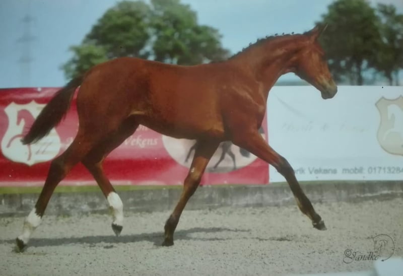 Harmonie ist eine sehr typvolle Stute . Sie hat ein sehr ausgeglichenes Temperament und unkompliziertes Wesen . Bei der Qualifikation für das LVM Fohlenchampionat erreichte sie 9x die 8,5 . Harmonies Mutterseite ist im Sport hoch erfolgreich bis zur Klasse S .DieGeschwiester der Mutter gehen bereits bis zur Klasse M. Sie sind in Luxemburg , Uwe Schwanz, Gut Neuenhof ,und Frederik Vekens . Ihr Vater High Motion war 3+4 jährig für das Bundeschampionat qualifiziert und gewann in Adelheitsdorf seine HLP. Harmonie wurde 3j kurz angeritten und dann nochmal auf die Weide gestellt. 4j wurde sie nochmals ca 6 Wochen geritten. Da ich aus gesundheitlichen Gründen nicht mehr reiten kann, wurde Harmonie nicht weiter ausgebildet und kann auch nicht vorgeritten werden. Sie war beim Anreiten absolut brav und unkompliziert Die gemachte Angaben sind unverbindliche Beschreibungen und stellen keine zugesicherten Eigenschaften dar. Der Verkäufer haftet nicht für Irrtümer, Eingabefehler und Datenübermittlungsfehler