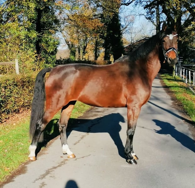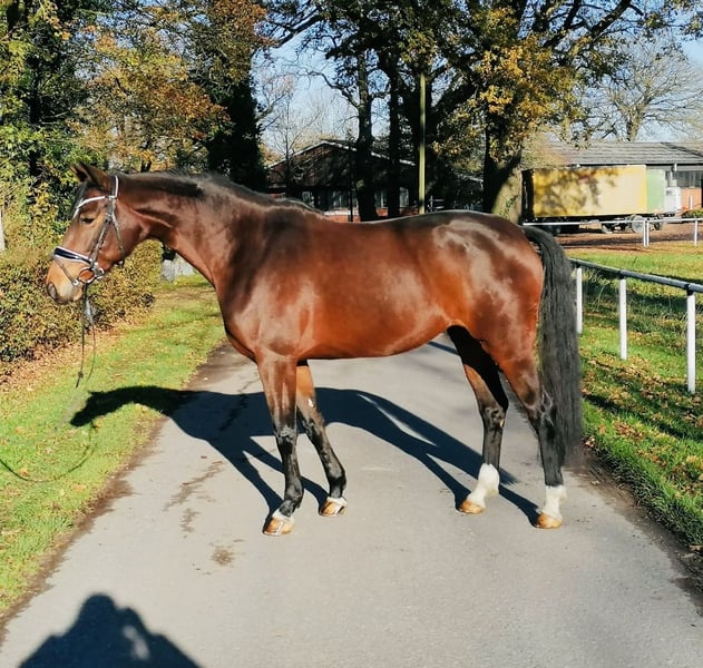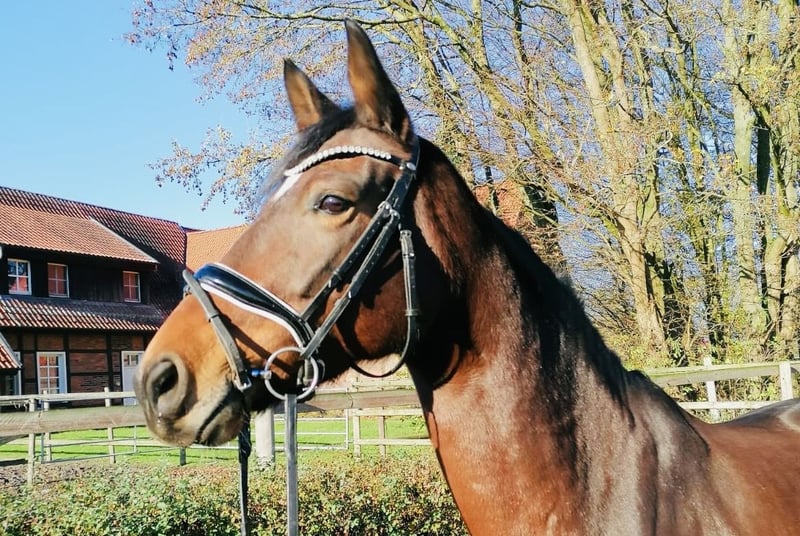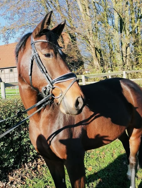 Verkaufe elegante Westfale-Stute Zum Verkauf steht eine wunderschöne braune Westfale-Stute, geboren im Jahr 2019. Mit einem Stockmaß von 165 cm vereint sie Größe, Eleganz und Bewegungsqualität. Die Stute ist gesund, Drpf A und Drpf L platziert. Sie zeigt sich auf dem Turnier sehr dominant und ist daher NICHT für einen Anfänger oder schwachen Reiter geeignet. Bei Interesse oder für weitere Informationen stehe ich gerne zur Verfügung. Besichtigung und Proberitte sind nach Absprache möglich.