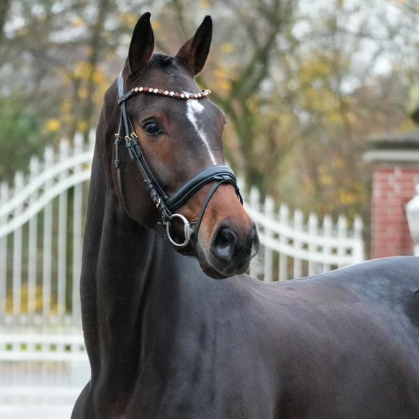 Von ihrem Züchterhaus an der niedersächsisch-westfälischen Landesgrenze wird Zackeria ausgestellt. Die gerade siebenjährige Stute befand sich bis Herbst 2025 durchgängig in der familieneigenen Ausbildung und wurde von der Züchtertochter Katrin Schmale mit zum Studium nach Nordrhein-Westfalen genommen. Dort stellte sie Zackeria leistungsgemäß in Dressurpferdeprüfungen der Klasse L vor. Aufgrund ihres vertrauensvollen Charakters war die Absolvierung der Turnierstarts auch ohne umfangreiche personelle Unterstützung möglich, und dies zeichnet Zackeria genauso im täglichen Umgang aus. Im Herbst 2025 erfolgte ein Berittwechsel in den Betrieb von Stefanie Viehoff-Wolf, um die nächsten Ausbildungsschritte umzusetzen. Dies ist unter anderem mit den fliegenden Galoppwechseln gelungen. Mit dem guten Rittigkeitsgefühl und ihrer soliden Grundausbildung lässt sich Zackeria einfach nachreiten, und die nächsten Ausbildungsschritte werden sich unkompliziert vervollständigen lassen. Sportname: Zakaria VS Sporterfolge: DPF (Dressurpferdeprüfung) Klasse A (Dpf A): 1/5; 1/w Klasse L (Dpf L): 1/2; 1/4 Leistungsprüfung: Feldprüfung Reitpferd - Trab 8,00 Galopp 8,00 Schritt 7,50 / Durchschnitt Rittigkeit 8,25 3. Generation Bes. Prämientöchter: Fiderwind v. Fidermark; Felice v. Fidermark; Fidelia v. Fidermark 4. Generation Sportpferde Springen: Ricky v. Rheinländer (SPR: 1,10m); Alfred J. Kwak (SPR: 1,35m); Giacometti v. Griseldo xx (SPR: 1,10m); Desperados v. D'Accord (SPR: 1,20m); Funny v. Florestan I (SPR: 1,20m). 5. Generation Sportpferde Springen: Daiquiri v. Damokles (SPR: 1,20m); Pennsylvania v. Prinz Pilot (SPR: 1,10m); Calimero First v. Riokiu (SPR: 1,20m). Mutter: Soleil Noir v. Varl ZL: 10/8 Großmutter: Felice ZL: 16/9
