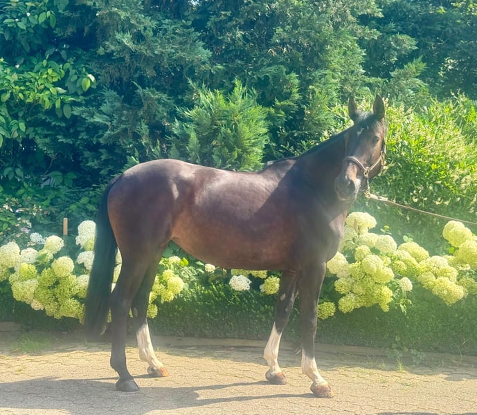 **Advertisement for sale: Westphalian mare** For sale is a beautiful Westphalian mare, born in 2018. This noble black and bay mare measures 167 cm and impresses with her appearance and excellent jumping ability. The mare is suitable for beginners, but should have the support of a more experienced rider or trainer, as the mare is already 6 years old, but has only competed twice at shows. She has mastered these competitions with flying colors and was placed in tests for young show jumpers both times. In the video, the mare is riding with an 11-year-old girl. **Characteristics:** - Breed: Westphalian - Gender: mare - Year of birth: 2018 - Color: black bay - Height: 167 cm - Discipline: Jumping This talented mare is ideal for ambitious riders. She impresses with her elegance, her friendly nature and her very comfortable movements. The mare is easy to handle at the farrier and loader and is super relaxed at shows. We are at your disposal for further information and viewing appointments. Contact us today to get to know this exceptionally lovely mare!