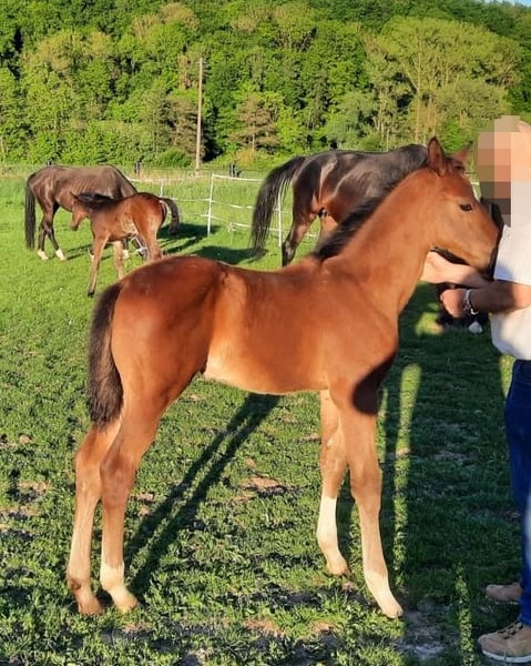 Wir verkaufen unser sportliches, braunes Stutfohlen, geboren am 03.03.2025, von Viva Vitalis x Rational. Als Tochter des Bundeschampion 2025 sticht sie mit sehr guten GGA und einem harmonischen Körperbau heraus. Ihre Mutter, eine V.Pr.St., vererbte neben ihrem großen Rahmen und ihrer Korrektheit auch das besondere Etwas. Sie ist weiterhin sehr lieb und total menschenbezogen. Bei Interesse melden Sie sich gerne direkt telefonisch bei meinem Mann: 0179 4878177 (Stefan Faupel) Ein Video kann auch versendet werden.