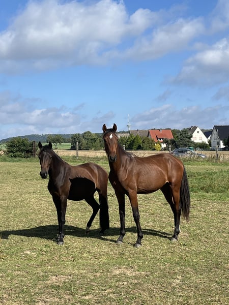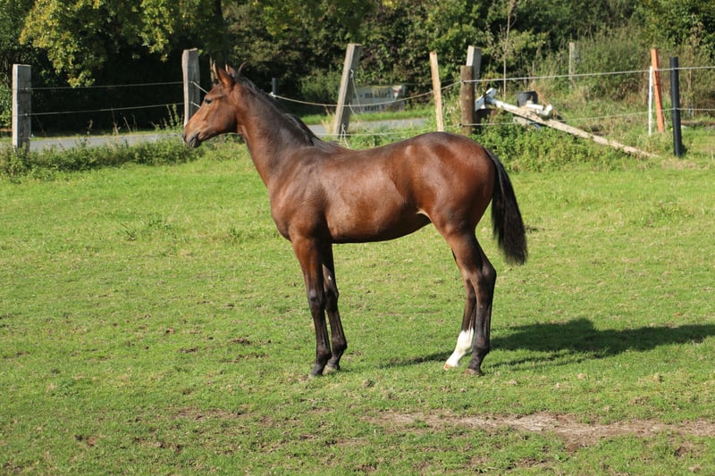 Zum Verkauf steht ein äußerst typvoller, einjähriger Wallach, geboren im Frühjahr 2024. Dieser charmante Braune überzeugt durch sein elegantes Exterieur, seinen klaren Kopf und sein ausgeglichenes, menschenbezogenes Wesen. Er verfügt über drei sehr gute Grundgangarten, zeigt sich im täglichen Umgang brav und lernwillig und ist bestens das Halftern, Führen, Putzen und den Hufschmied gewöhnt. Abstammend von Felissimo sowie aus einer Riccio x Delphi-Mutterlinie, vereint dieser Wallach beste Dressurveranlagung mit modernem Typ und korrektem Fundament. Das erwartete Endmaß liegt bei etwa 1,70 m. Der Preis ist verhandelbar.