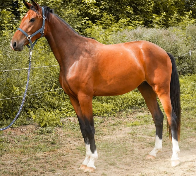 Zu verkaufen steht ein beeindruckender Wallach von Flavis, geboren im März 2023. Dieser elegante Braune überzeugt nicht nur durch sein ansprechendes Äußeres, sondern verspricht auch überdurchschnittliche Dressurqualitäten. Mit seinem harmonischen Erscheinungsbild zieht er garantiert alle Blicke auf sich. Die gezeigten Fotos stammen aus dem vergangenen Sommer. Aktuelle Bilder folgen in Kürze nach dem Fellwechsel. Sein Vater, Flavis, ist auf Grand-Prix-Niveau erfolgreich und wurde bereits im Alter von vier Jahren Bundeschampion der vier- und fünfjährigen Fahrpferde. Für interessierte Gespannfahrer könnten wir zudem einen zweijährigen Halbbruder anbieten, der optisch einem Vollbruder sehr ähnelt. Bei Interesse oder für weitere Informationen erreichen Sie uns gerne unter der Telefonnummer 0171/7456931. Eine Besichtigung vor Ort ist jederzeit möglich und ausdrücklich erwünscht. Menschenbezogen aufgewachsen kennt er 24h-Weidegang, Boxen und Paddock-Haltung. Seine Mutter ist eine Verbandsprämienstute von Apollon (Ampere).
