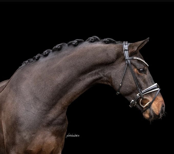 Zum Verkauf steht ein bildhübscher, im Hengsttyp stehender Wallach vom Ausnahmehengst Jovian, angepaart an eine Fürstenball-Stute aus bestem Mutterstamm! Just can‘t get enough war als Hengst in Westfalen gehört und wurde im Frühjahr 2024 angeritten! Nach einem Sieg bei seinem ersten Turnierstart durfte er nach dem kastrieren den Sommer 3-jährig nochmals auf der Wiese verbringen! Im Frühjahr 2025 wurde er wieder in Arbeit genommen & ist mittlerweile Dressurpferde L fertig! Er war bei jedem seiner Starts platziert, ist ein absolutes Verlasspferd, immer brav, zuverlässig, hat keinerlei Unarten und war nie verletzt! Er ist sehr schön zu reiten, besitzt viel Talent zur Versammlung und lernt schnell neue Lektionen! Außerdem macht er brav kleinere Sprünge unter dem Sattel, geht sehr brav alleine und in der Gruppe ins Gelände, ist unkompliziert beim Hufschmied, dem Verladen und dem Tierarzt. Er ist in Familienbesitz und seine Besitzer geben ihn schweren Herzens aus privaten Gründen ab. Er eignet sich hervorragend als Mädchen- oder Familienpferd, da er absolut zuverlässig und freundlich ist und sich trotz seines Alters schon sehr abgeklärt in allen Situationen zeigt! Die Röntgenbilder der Körung (Dezember 2023) sind vorhanden inkl. Rücken und ohne Befund. Anfragen bitte per WhatsApp: 0170/2779570
