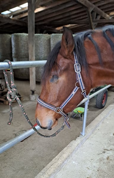 A la venta este talentoso potro de 4 años de Westfalia, hijo de Fürst Toto. "Fürstenherz" está en fase de entrenamiento, conoce el paso y el trote bajo la silla y es muy tranquilo en su manejo. Lamentablemente, a la edad de un año, perdió su ojo izquierdo debido a un accidente, aunque actualmente esto no le limita en nada. Está vacunado contra herpes, influenza y tétanos. Las radiografías están disponibles y sin hallazgos relevantes. Ideal para jinetes de ocio ambiciosos o también para competidores que buscan un compañero prometedor. La yegua madre, a pesar de su origen en la doma clásica, mostró también mucho talento en salto. Si está interesado o desea más información, no dude en contactarme. Las visitas se pueden concertar previa cita. ¡Esperamos su mensaje!
