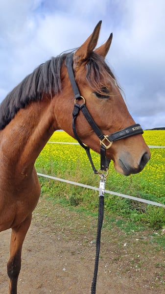 For sale is this talented 4-year-old Westphalian gelding by Fürst Toto. "Fürstenherz" has been backed, is familiar with walk and trot under saddle, and is absolutely well-behaved in handling. Unfortunately, he lost his left eye at one year old due to an accident, but this currently does not limit him in any way. He is vaccinated against herpes, influenza, and tetanus. X-rays are available and show no significant findings. Ideal for ambitious recreational riders or even competitive riders seeking a promising partner. The dam mare demonstrated, despite her dressage lineage, considerable talent over fences as well. If you are interested or require further information, please feel free to contact me. Viewings can be arranged by appointment. We look forward to hearing from you!