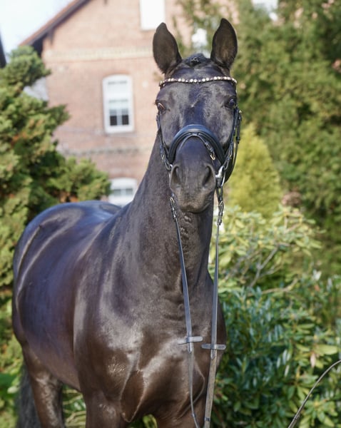 Beautiful Westphalian gelding, born in 2021, in an elegant black coat. Standing at 16.1 hands, he is ideally suited for dressage. The young gelding impresses with his refined appearance and promising talent in the dressage arena. He is well-started under saddle and ready for further development. He shows potential for the future. If interested, I am happy to provide more information and arrange a viewing.