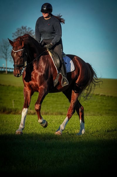 Samba is a 4.5-year-old Westphalian riding horse standing approximately 185 cm, sired by Selectric out of Sezuan, Zack, De Kooning x Laureus, Feuerschein II. *Samba* is an exceptional horse. A stunning, well-trained gelding with three excellent gaits and a fantastic temperament. He handles everything with ease, whether it’s indoor or outdoor arena work, solo rides, or group outings. He’s used to being ridden in halter and bridle, or simply cantering across stubble fields with a pad. Samba is comfortable in water and has jumped small obstacles. He is very versatile and well-schooled. Cool-headed and fearless, he approaches every calmness exercise with ease. He’s familiar with walking through flutter tapes, plastic bottles, and similar obstacles. !!! BE SURE TO WATCH HIS VIDEO !!! He is affectionate, friendly, and very people-oriented. He comes with a current comprehensive veterinary health check (AKU). A recent video can be found in the listing or at the following link: https://www.youtube.com/watch?v=yTkk4GQFf3Y Horse dealership Dederichs – Your partner for horse purchasing Contact & Availability: Inquiries exclusively by phone at 0173/9792139 Monday – Friday: 09:00 AM – 6:00 PM Saturday: 09:00 AM – 3:00 PM Sunday: Closed Follow us on social media! Experience our daily work with sale horses on Instagram, TikTok & Facebook at Pferdehandlung Dederichs Discount: Immediate pickup of your new dream horse grants you a 5%–10% discount Trial riding & demonstrations: • Trial ride: €30 per horse (up to 2 riders), credited towards purchase • Holidays: Trial ride €50 • Demonstration by our trainers: €25 per horse (including ground work and riding) Pre-purchase examination & transport: • Many of our horses already have an AKU • You are welcome to bring your own veterinarian • We can arrange an examination for you • We also assist with transportation to your new home Additional horses for sale: We have more horses available that are not yet listed online. If your dream horse isn’t listed yet, don’t hesitate to contact us. Important notes: • Height measurements are approximate and not precisely taken • All descriptions are subjective assessments by the seller and do not constitute guaranteed properties For more information, visit: www.Pferdehandlung-Dederichs.de