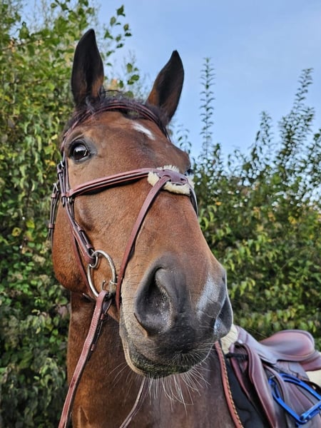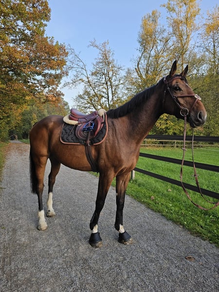 Purchased directly from the breeder and consistently well-trained, he is calm and easy to handle in everyday situations, as well as when being groomed, shod, or examined by the veterinarian. He is reliable in the terrain, whether alone or in a group. The gelding has nice basic gaits and impresses over jumps with talent and sufficient scope, which is why he is not suitable for beginners. The horse is not a weight-carrying mount and is therefore only suitable for lighter riders. No X-ray findings available. Viewing and trial riding possible by appointment.