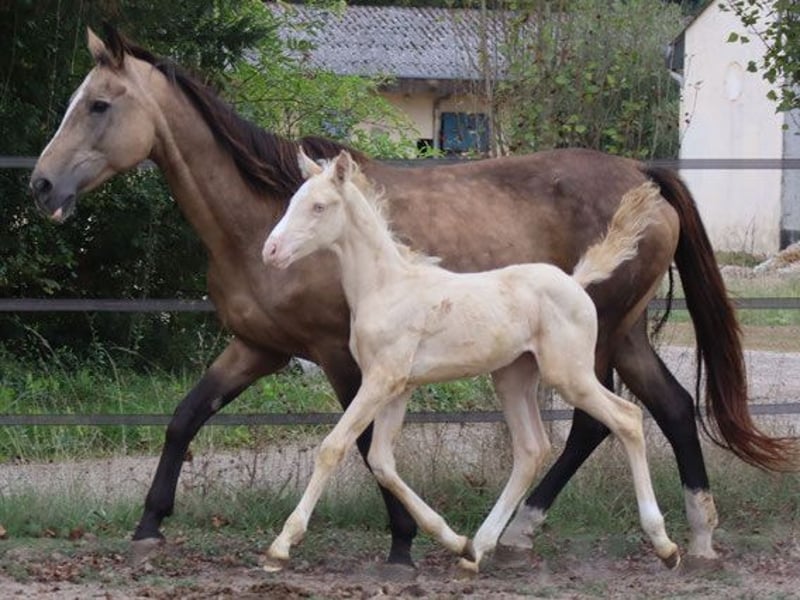 Warmbluthengst | Perlino | geb. 2022 | 1,60m (measures 16th of June, 2025) Zangersheide Hauptstammbuch + IFCE (Facteur Selle Français) Genetik: E/_, A/_, CR/CR Kastration auf Wunsch möglich WIN MY HEART Z ist ein junger, aktuell noch schlaksiger Junghengst, der seine Jugend in einer artgerechten Aufzuchtgruppe mit täglichem Menschenkontakt verbringt. Er zeigt sich freundlich, neugierig und gelassen im Umgang. Führen, Putzen, Wurmkur, Impfen, Barhufpflege sowie Bodenparcours und Verladen (LKW) sind ihm vertraut. Durch sein korrektes Fundament, harmonisches Wachstum und seine Bewegungsgabe bringt er gute Voraussetzungen für eine vielseitige, spätere Nutzung mit. Vater: WHITE WINE GF mit bewährten Linien über WELTMEYER, WOERMANN, LADYKILLER, NOTAR Mutter: PHANTASIA GF, prämierte und bewährte Oldenburger Stute in Buckskin, mit international erfolgreicher Nachzucht Muttervater: NARISTON OLD – sportlich geprägter Oldenburger Hengst mit solider Vererbung Gezüchtet in siebenter Generation im eigenen Haus (Gestüt Falkenhorst, seit 1978), mit hohem Hannoveraner-Anteil und einem Schuss englisches Vollblut Züchterisch sind ihm viele Wege offen: z. B. KWPN, Zangersheide, Royal Belgium Warmblood, Anglo European Studbook.