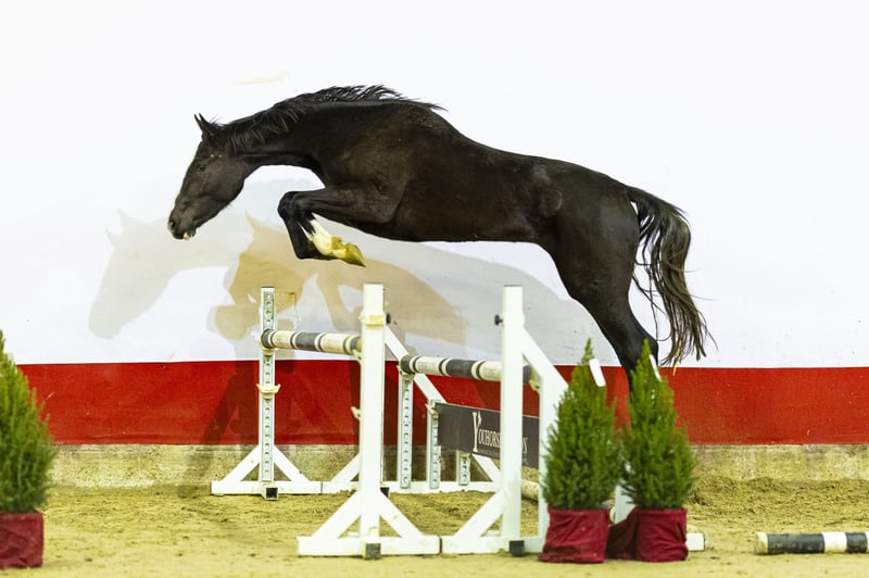 Emma Z is a striking black mare with modern expression and natural presence. In free jumping she shows technique, carefulness and scope, combined with light movement and a correct shape over the fence. Her pedigree, featuring Emerald van ’t Ruytershof and Iceman de Muze, promises athleticism, sharpness and genuine sport capability. Sire Emerald built an outstanding international career with Harrie Smolders, winning at the highest level and developing into one of the world’s most influential sires. He already produced numerous 1.65m–1.70m performers such as Igor, Jaguar van de Berghoeve, Mandato van de Neerheide and Nikka vd Bisschop. Dam Mangnifique, by 1.60m stallion Iceman de Muze, comes from a strong performance family. She is a half-sister to Gemma W (Luidam), a 1.65m–1.70m Grand Prix mare successfully ridden by Daniel Bluman. Granddam Britt W (Unaniem x Calvino Z) adds further depth to the pedigree. She is a half-sister to: Important Style VK (Falaise de Muze) – 1.50m, BWP/AES approved Floyd W (Bernini) – 1.45m two 1.30m jumpers The same dam line also produced the international Grand Prix horses: Von Dutch (Vigo d’Arsouilles) – 1.60m Dino W (Berlin) – 1.60m With her refined model, correct conformation and natural jump, Emma Z combines elegance with genuine performance potential, making her a valuable prospect for both sport and breeding.