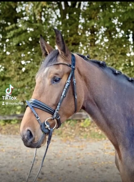For sale is a well-built, dark bay mare (born 2021, approximately 17.3 hh), sired by Cornetto du Domaine Z (Cornet Obolensky). Character: Anna is a very balanced and pleasant young mare. Despite her young age, she consistently strives to do her best and to please her rider. She is calm, friendly, and personable in daily handling. Training & Behavior: Anna is developmentally appropriately in training. She is familiar with riding indoors, on the arena, and in the field, both alone and in company. She is also accustomed to the lunging circle and has previously been turned out in a mixed herd on pasture. She has already been introduced to jumping and demonstrates good awareness and enjoyment of the work. Under saddle, she confidently and calmly clears small jumps. Additional features: - Farrier- and loading-safe - Healthy, regularly wormed and vaccinated - Well-behaved and cooperative in handling A great young prospect with a solid foundation and lots of potential for the future – ideal for someone interested in further training a young horse.