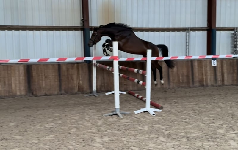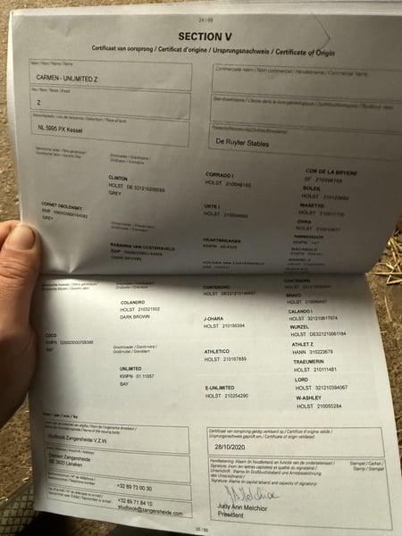 Schöne, gut gezogene und gesunde 5-jährige Stute. Cornet Obolensky x Colandro. Ca. 1,63 m. Liebes und unkompliziertes Pferd im Umgang, korrekt und gesund. Unter dem Sattel noch etwas grün, aber definitiv ehrlich und brav! Sie wird hier ruhig weitergeritten und für den Parcours vorbereitet! Eine tolle Gelegenheit, ein feines Pferd mit einem unkomplizierten Charakter zu kaufen. Sie zeigt definitiv Potenzial für den Sport! Frei von Stallmängeln! ☎️ 06-10197456 Oud Gastel, NL