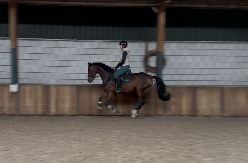 Bonita, bien criada y sana yegua de 5 años. Cornet Obolensky x Colandro. Alrededor de 1.63m. Caballo cariñoso y fácil de manejar, correcto y saludable. Bajo la silla aún un poco verde, pero definitivamente honesta y tranquila. Se está montando aquí con calma y preparándola para el recorrido. ¡Una buena oportunidad para comprar un buen caballo con un carácter sencillo! ¡Sin duda muestra potencial para el deporte! ¡Libre de vicios de establo! ☎️ 06-10197456 Oud Gastel, NL