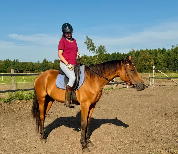 Six-year-old Zangersheide mare, a direct daughter of Corneta Oboleński (this year's number one stallion in the WBSFH world ranking), from a dam line that can boast another exceptional sire, Le Tot De Semilly, the sire of Diamant de Semilly. This impressive jumping pedigree is, however, housed in a relatively small horse. The mare currently measures approximately 156 cm at the withers. A unique and somewhat rare trait within this breeding line is her temperament, which combines intelligence and calmness. She was purchased directly from the breeder as a young horse, intended for equine-assisted therapy and work with children. In the future, we planned to test her breeding potential, but this was not realized due to the closure of the operation. Before that, she was ridden, broken in, and adapted for therapy work. For the past two years, she has been living peacefully in a pasture. She has never been mistreated, overexerted, or exploited. She trusts humans and seeks contact naturally. She continues to demonstrate great stability and a cooperative attitude. She is a "thinking partner" type, well-suited for work with people. At any time, she could return to under-saddle work or tasks involving children. Due to some signs of talent and rebound strength, we believe she could also be tested in sport with a light rider. The mare is already showing the first signs of spring estrus, but due to her compact build, she has not yet been tested or used for breeding. The buyer is free to use her in this regard as well. Modern reproductive techniques allow an ambitious breeder seeking excellent DNA to obtain offspring even from a small mare (ICSI or ET), without risking her life or health through direct breeding. The price reflects her outstanding pedigree, as well as her small stature and other aforementioned qualities. Negotiations are possible, provided the seller is granted the opportunity to obtain one embryo from the mare during the 2027 or 2028 season (details to be agreed upon in the contract).