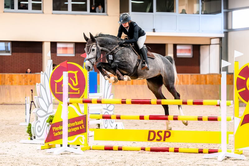 His sire, Liamant W (by Diamant de Semilly), competed up to 150, and his dam up to 160. Very brave and kind horse, competed up to 110, easy to handle, transport, etc., healthy, ridden by a woman.